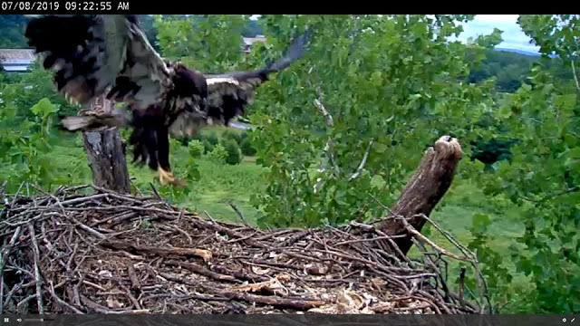 839 pm 8 min long till he left...screaming the whole time.. Hissy fit Hope arrives You could hear him before he ever got to the nest I think the parent must have been flying around