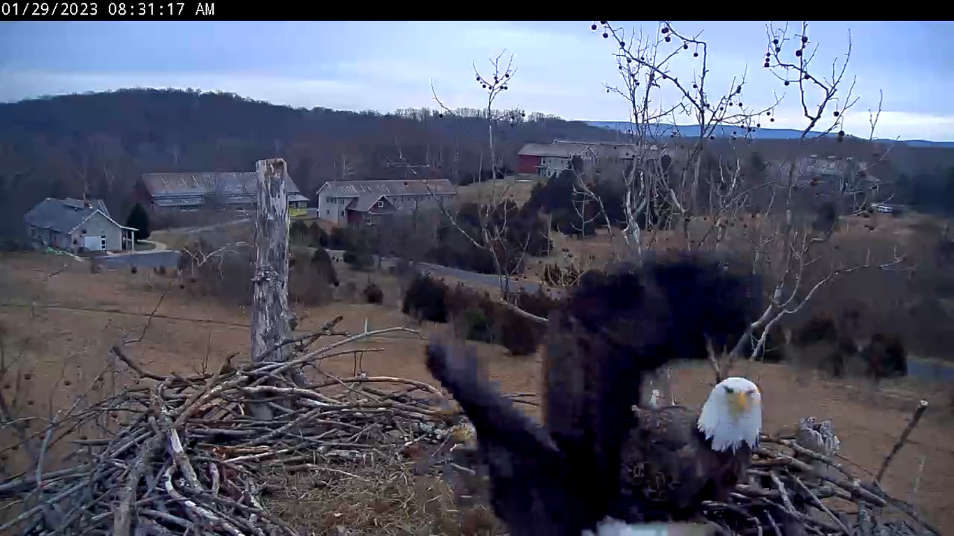 It looked and sounded like a intruder because of the fly arond by the othe eagle byt a deliverey was a few min later