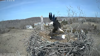 7:34 am first Eagle arrives and Scout is in the nest moving sticks. He still has his brown dot on the back of his head so he’s easy to ide...