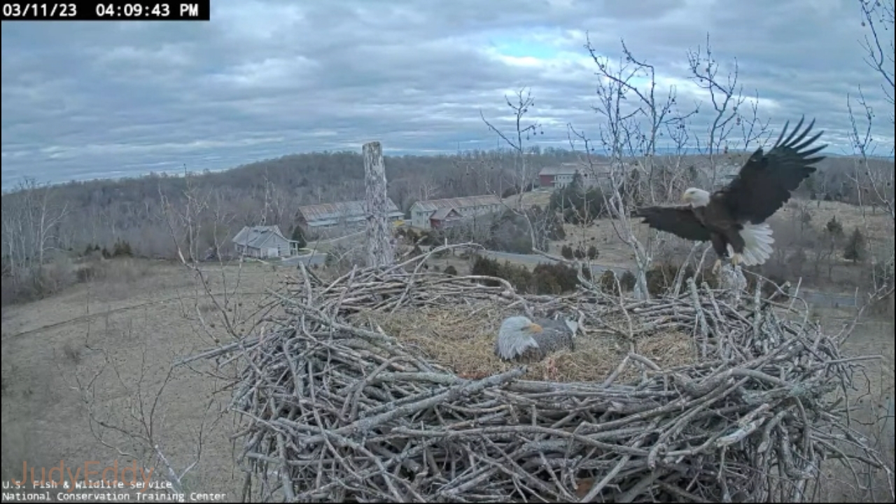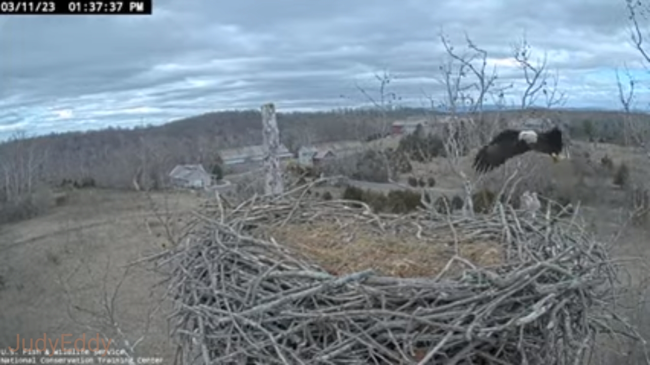 337 pm - Calls and trills heard. One adult is perched on a branch up above the nest in the area we call the attic. Sounds like Bella the c...