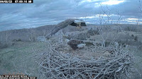 415pm Bella in. 4:34 Watching her territory. 4:59 Bella looks like she called out. No sound to be for sure. Shes still in the nest watching...