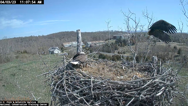 255return with more sticksThe squirrel go? Not unless he buried it and found the fish and was eating the fish but who knows as Nest turns lol!Poof he was eatin a fish. Where it came from. Maybe they burried it and found