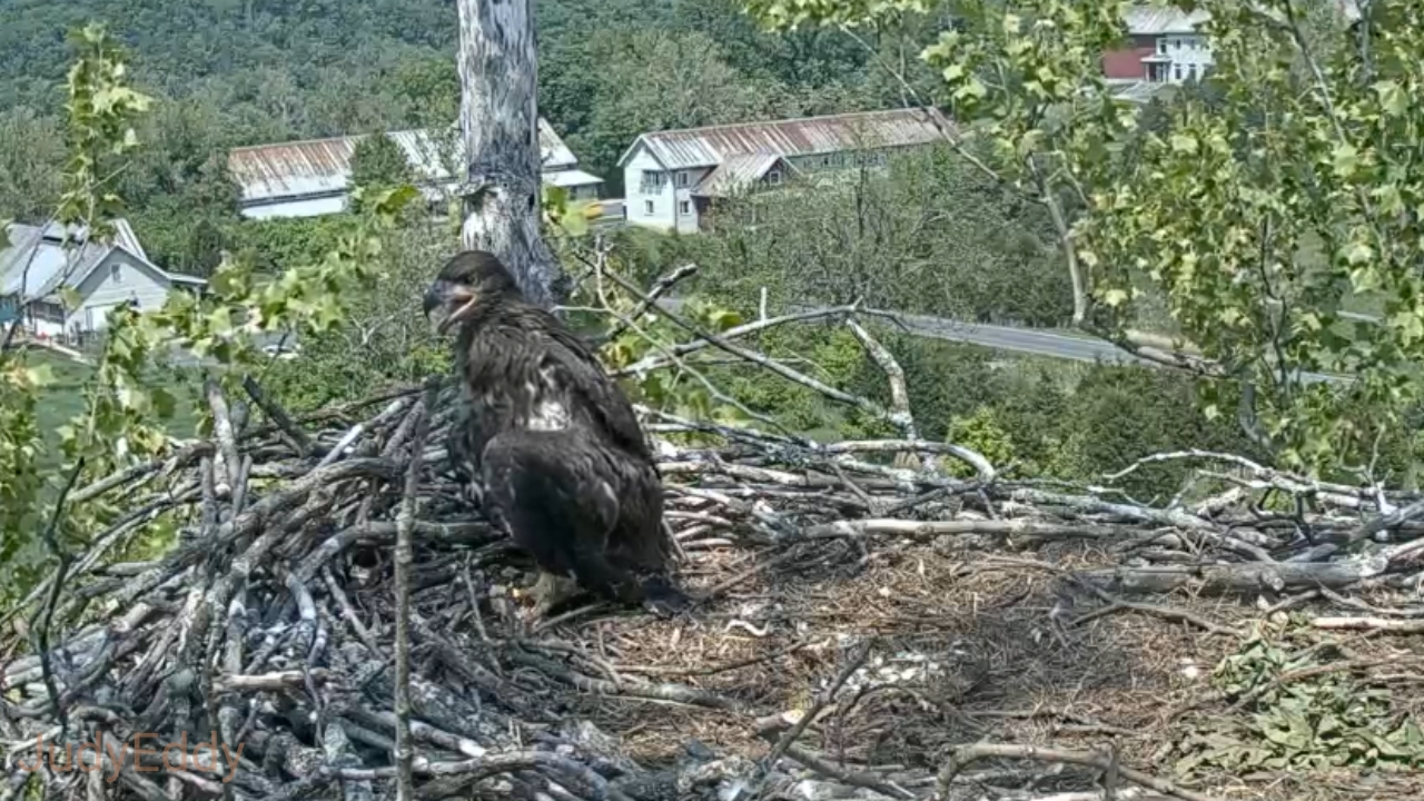 These two pictures are from the Field cam where it's out of you where we can see it Shep was setting on the edge of the nest while Bella was feeding Jefferson airplane! I'm adding the airplane to it LOL just as a joke I think it fits him Randy from NCTC laughed at my airplane
