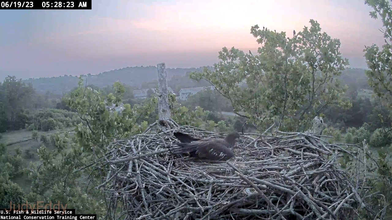 Good morning Eagle Bud let's our little Jefferson Airplane spent the night in the nest! Woke up squawked for a meal didn't get it! We lost their camera at 7:50 this morning! Reports from the field came at 10:25 it looked like a fish was delivered because both parents were in the nest! Here are a few pictures and a video before we lost the camera