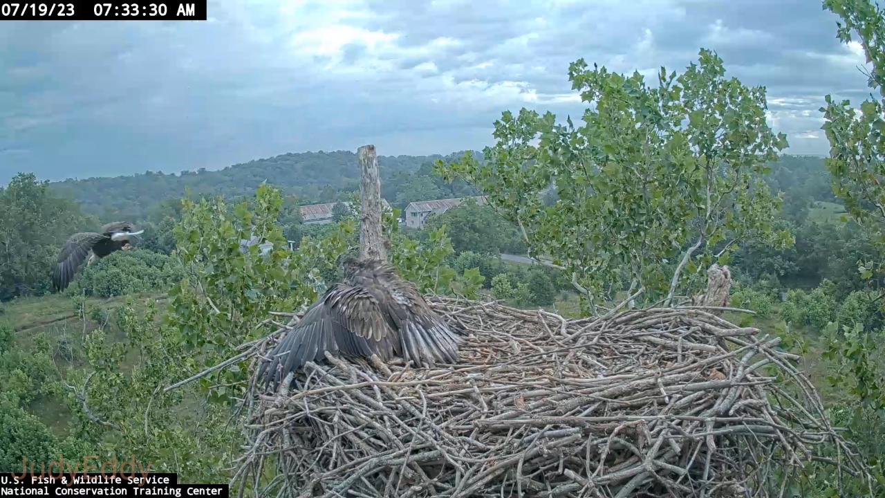 541 Jefferson pops into the nest for early morning I'm hungry calling out to parents okay let's go find parents off we go