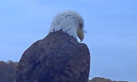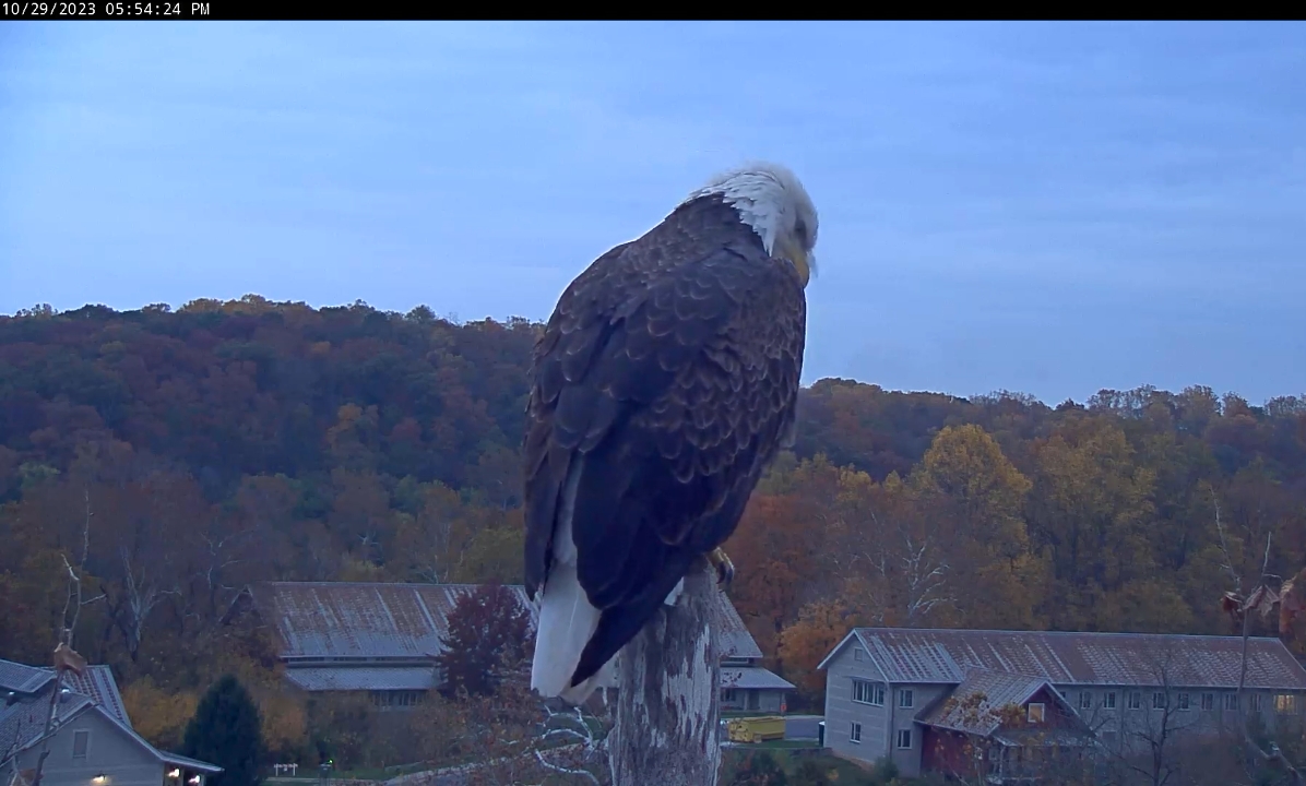 Male Eagle spent the night left at 7:15 still don't know which either it was didn't see any bloody marks though but a dots on head