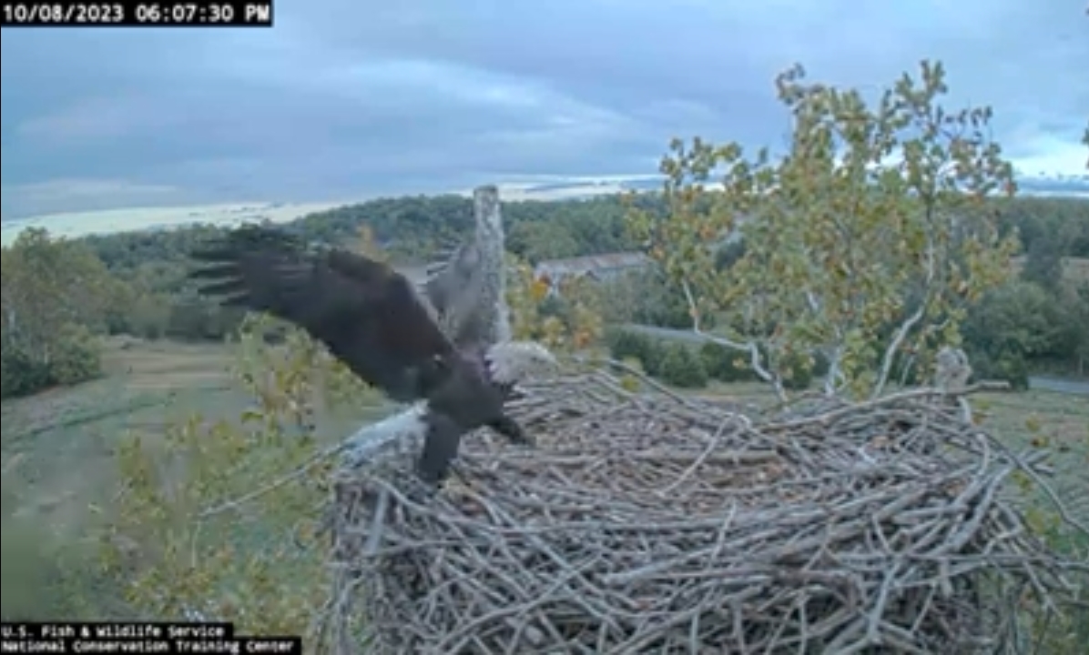 This is a view of the Field cam if you notice a slow motion it down so where you can see the eagle leave the nest hard to see the little white tail feather there