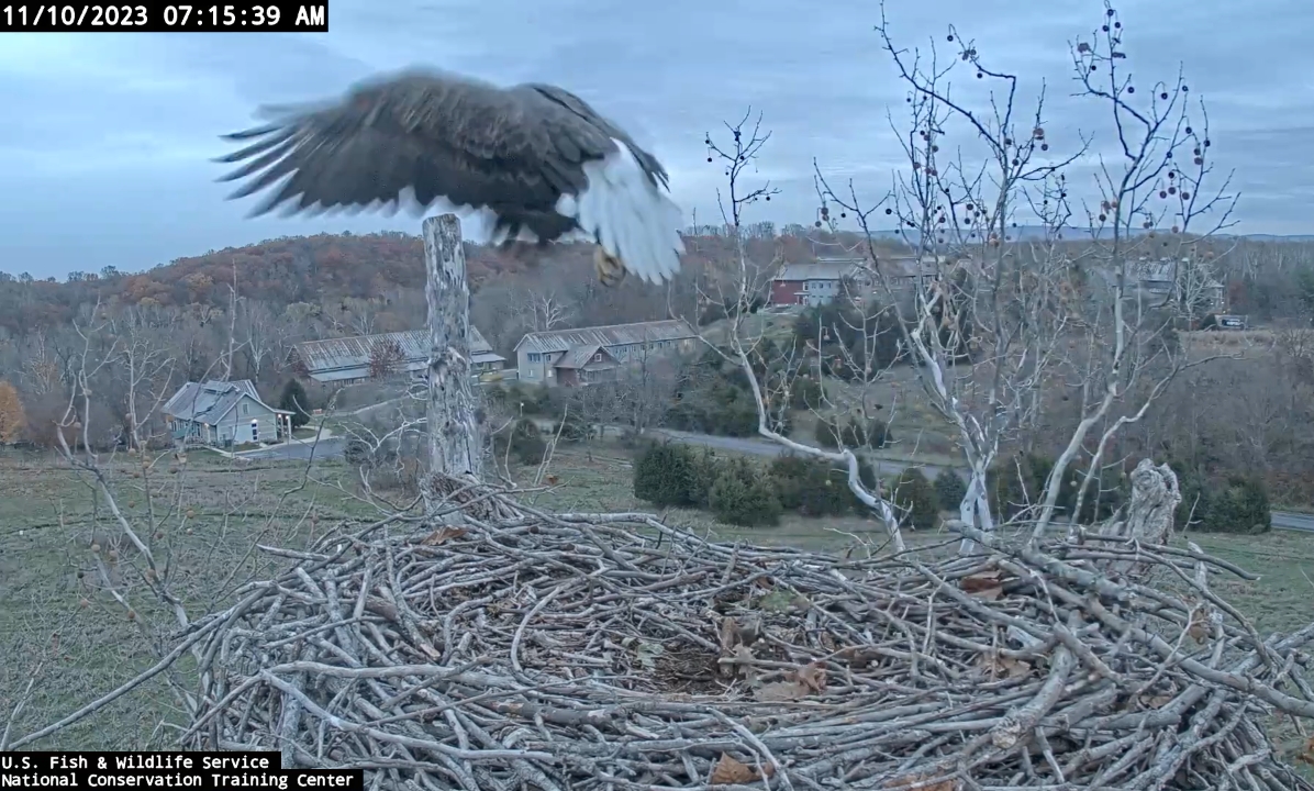 6:40 to 6:50 time lapse video down a one minute 20 seconds because we were bored on the pole but an eagle flew around in the beginning of the video and I think it landed under the platform because we kept looking down below