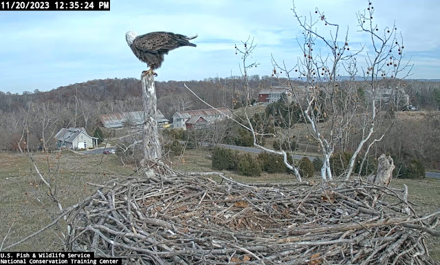 1201 we have an eagle to the nest all the sudden some one comes in Bella chases off Intruder out would love to know if that was a male or female1204