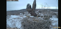 723 Scout in the nest Bella follows him right in 726 Scout exits for the sticks 725 mating this morning 7:34 Bella exit