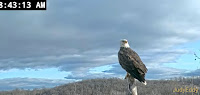 302 pm Mating, third time today at the nest. They likely mate elsewhere too. Afterward a bit of restorations are in order then Bella starts to eat some of the leftovers in the nest. 306 pm Scout exits the nest. 310 pm Scout flies in with another branch. 317 pm Scout exits again flies toward the grove of trees at back of the nest. 320 pm Scout returns with some bedding/nesting materials. Bella is still working on the buffet