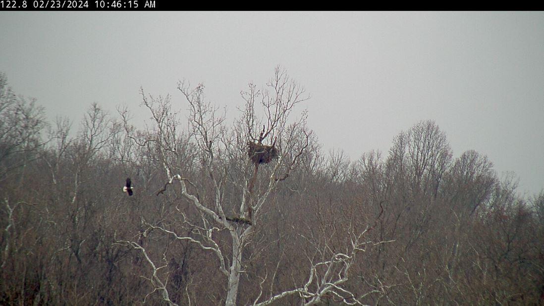 959 she comes in with a stick 1002 she goes up to the Lop he continues to work in the nest on the cup Bole area.