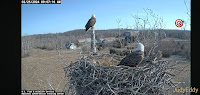 10:00 Bella is in the nest she calls out earlier she was calling out and you could hear him answer so I don't know if he's in the nest tree below or somewhere close but she just sits