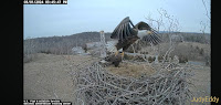 1:30am looks like Bella comes to the nest in the middle of the night and stays 557 Scout comes in and almost misses the side of the nest as you can see in the picture 558 1 559 the second one empty nest 6:15 one is back 6:38 we're out of here empty nest 6:49 we are back to the Lop 652 we're out of here again 742 and with a stick followed by Scott with the stick also at 7:42 he's got a large dick 743 they crash into each other 748 he goes off from the Lop 9:05 he is back with a large stick like a big Javelin stick it's stuck in the side of the nest and now he goes on top of Valor with the stick 906 looks like we're trying to place the stick she is up to the lot 907 off she goes 907 and he follows 919 we are back Scout is doing a egg roll and he does incubate his precious baby 1002 out of here 1018 we're back 1020 incubating 1117, he arrives with a big haul of bedding 1119 puff. She goes 1121 puff higos. Following 1124, he is back with a big stick 1128, add a hair again empty nest. 1132 back in the nes t empty Talon. 105 same Eagle still Incubating babe. No food delivery that I have seen today. Only sticks and bedding! Off to pick up the granddaughter.