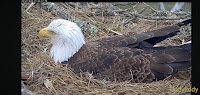 12:55 pm - Scout arrives with food. Bella remains seated but calls out to him "save some for me"!! Bella gets up looks like she may go to the pantry to claim the meal but nope she repositions herself and resumes incubation. Scout is eating what looks to be fish!