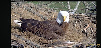 Cog Bello is setting on the lop, and Scott was approaching the lap and almost knocked her off. I don't know if he was attempting to mate. Or he wanted her to move. He fumbled the landing. She was still on the lawn. She goes down in the nest and he reapproaches and lands in the nest.
