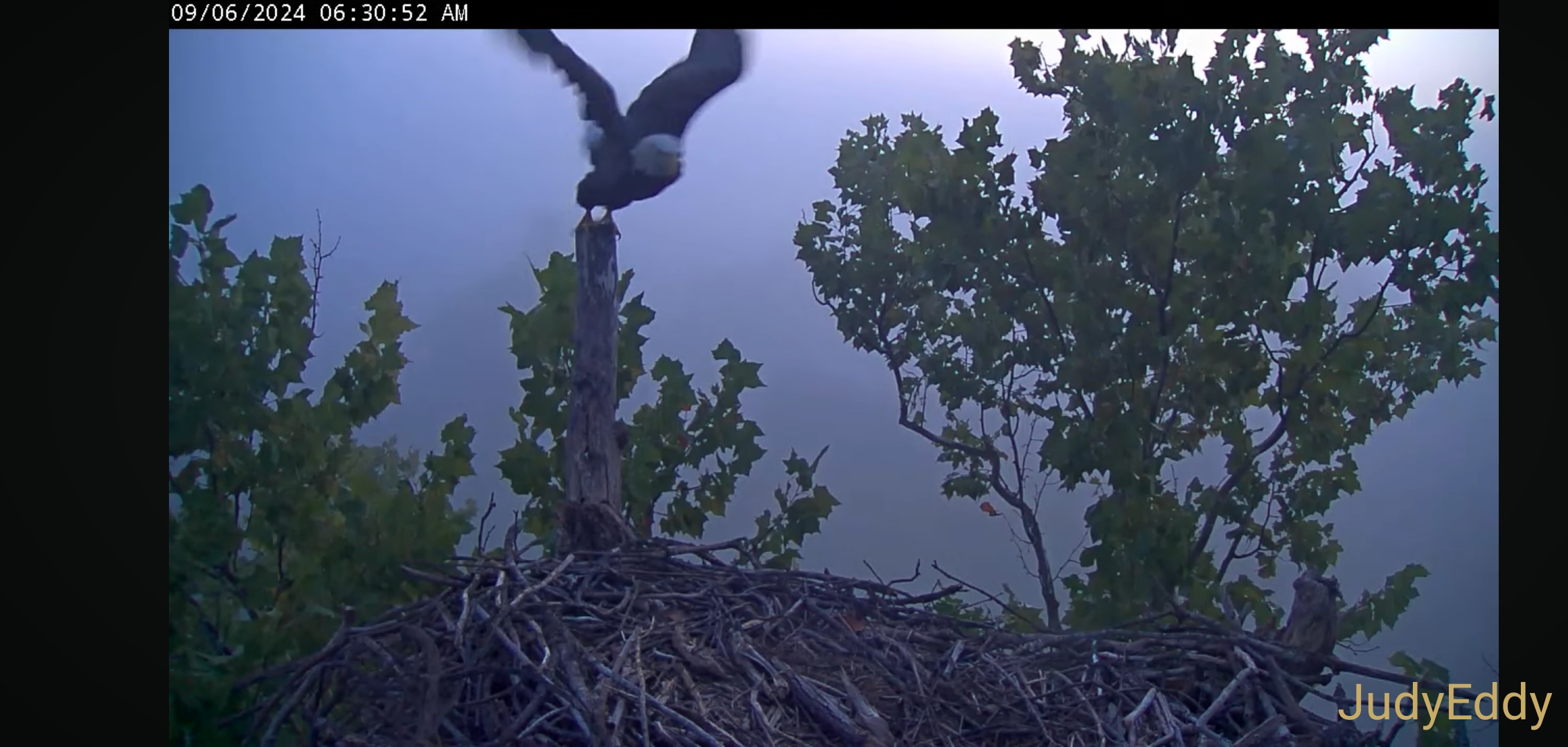425 p.m. Scout is first to arrive you can see him out in the field fly around the nest twice in order to land! Shortly thereafter Bella jo...