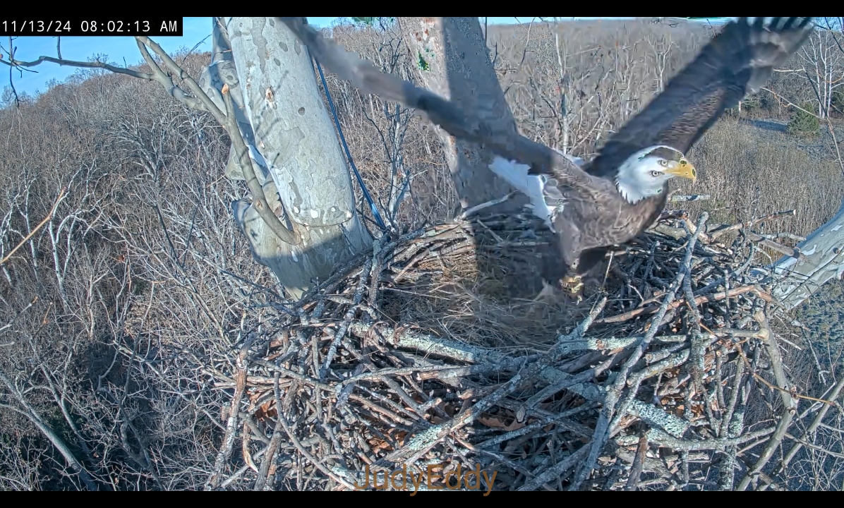 621 am ON - Eagle in old nest. Not sure, I think Bella. Moving sticks.