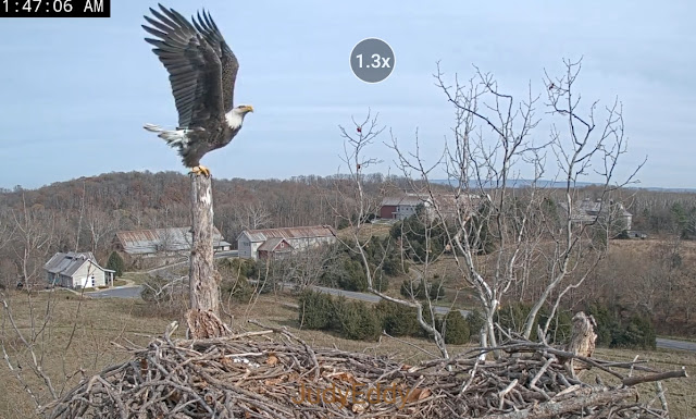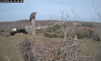225 pm - ON - Bella remains perched on the LOP. Heard what sounded like gunshots earlier, it is hunting season so not unexpected.