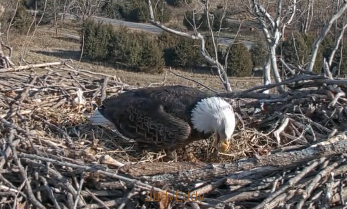 653 am - ON - Bella leaves from LOP and Scout follows from short post.10:39 AM scout shows up at the new nest. He picks around and bole area for a few minutes.Then stops and look around waiting
