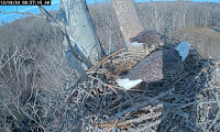 8:52 AM scout arise with another stick in the NN He take the stick from his talon and puts it in his beak to move the large lumber. .That's a nice crib. Rail. He almost takes off flying. It looks like moving that rail. 8:54 AM Bella arrives. On the scene she Arise with a stick, it almost lands on him. This nest is just too small but I guess they'll get used to it.These 2 are hilarious watching. He picks up a stick.She decided she wanted to pick up the same stick.They're moving the stick together.I think a fight will and sue l o l Looks like they are fighting, but we know they're moving the stick.