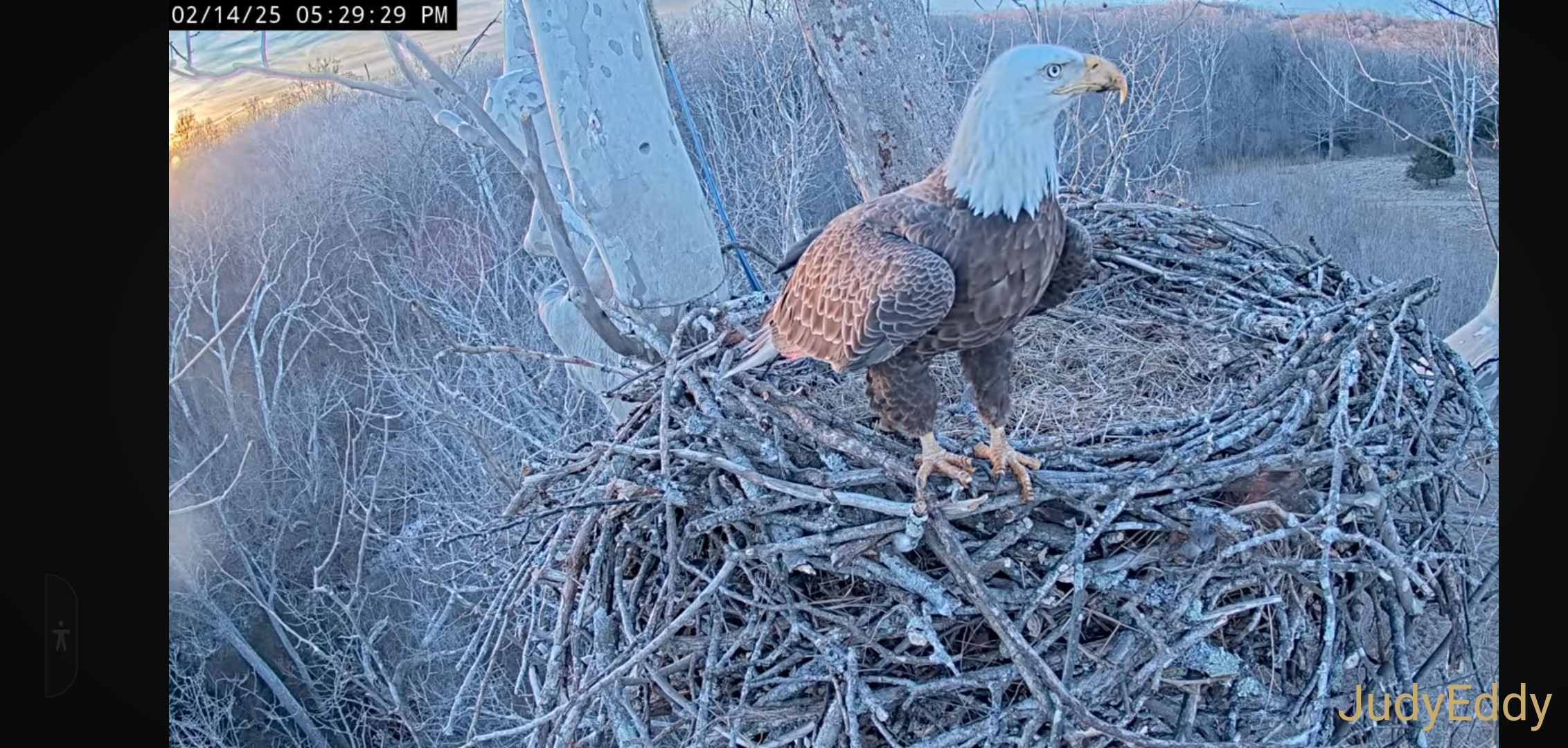 530 pm Bella is looking down from LOP and Scout is looking down over the nest. Whatever it was it must have been a nice meal for them to both be upset by it.