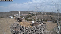 1:17 PM here comes scout back to the nest. They have conversation.S she starts it before he even enters the nest. He lands on the crib rail oh funny thing,right away he starts chasing flies again.What is it with him and flies?He's got eagkr vision and anything that flies around and bugs him.Bella's looking at him like what are you doing.