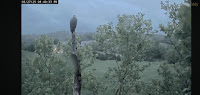 440 pm Bella is perched in the attic of the nest tree. Surprised to see her there so early. Per Field Cam. 442 pm - Scout flies in and joins her in the attic. Bella trills.446 pm Scout lands on the LOP. Bella remains perched on Belles branch in the attic.