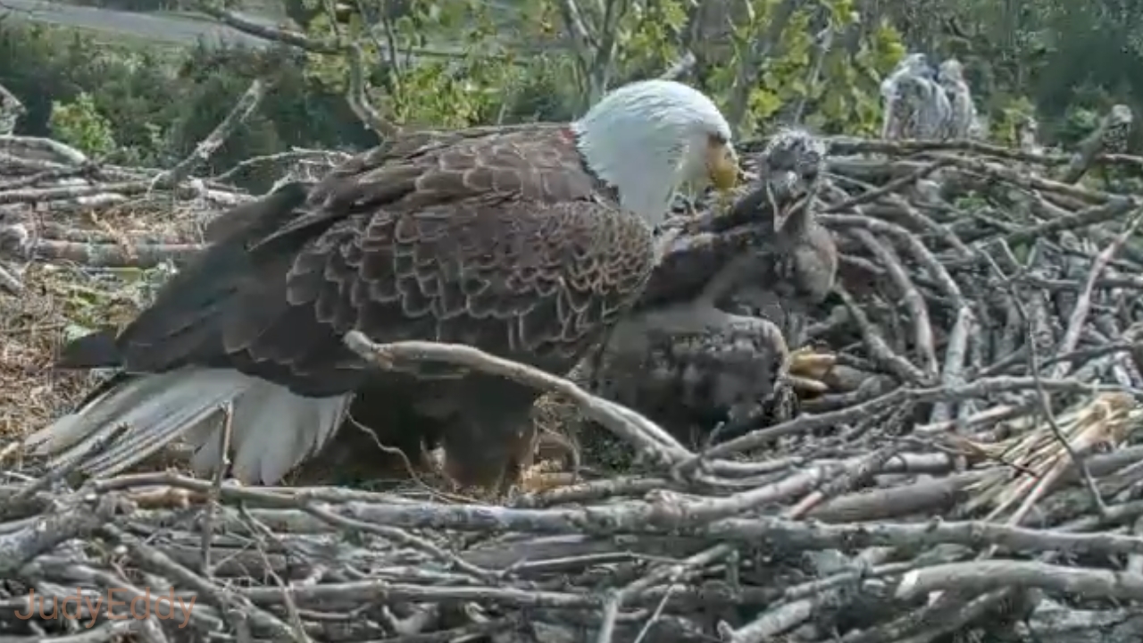 E7 is getting bigger they let him spend the night by himself no one was on the stump they may have been up in the attic part but probably in the babysitting trees he's getting old enough now he also swallowed the duck hole today himself